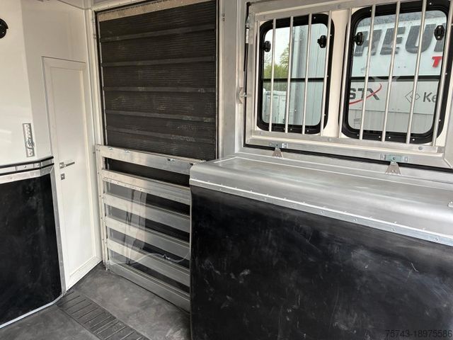 1-3 horses, rear and side ramps, pop-out, basement under the apartment, storage compartments around the house,
