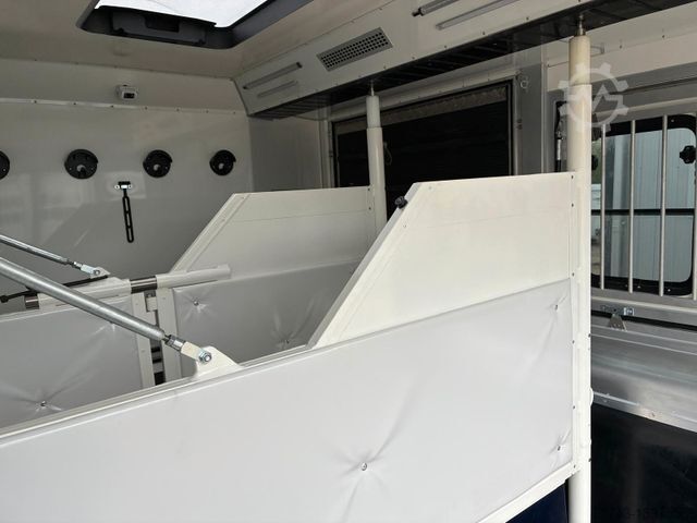 4 sleeping spaces, living room, video surveillance, parking air conditioning, parking heater, 1 TV/satellite, fine wood, bathroom, shower, toilet, air conditioning, kitchen, leather seating area, microwave, refrigerator and freezer, external saddle rack, cable winch, cruise control, alloy wheels, navigation system, tow bar, and much more.