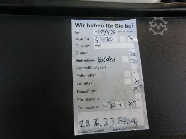 First owner, ABS, ASR, ESP, driver airbag, passenger airbag, all-wheel drive, third brake light, electrically adjustable exterior mirrors, power windows, headlight range control, fog lights, cornering lights, radio central locking and immobilizer, electric interior lock, air conditioning, second heater, hands-free system, cup holders, power steering, steering wheel adjustment, cruise control, rear Parktronic, DAB radio, Bluetooth, right-hand sliding door, summer tires, cargo area lashing points, cargo area lining, wooden cargo floor, cargo securing points, tinted windows, 16-inch tires, EURO6 DPF