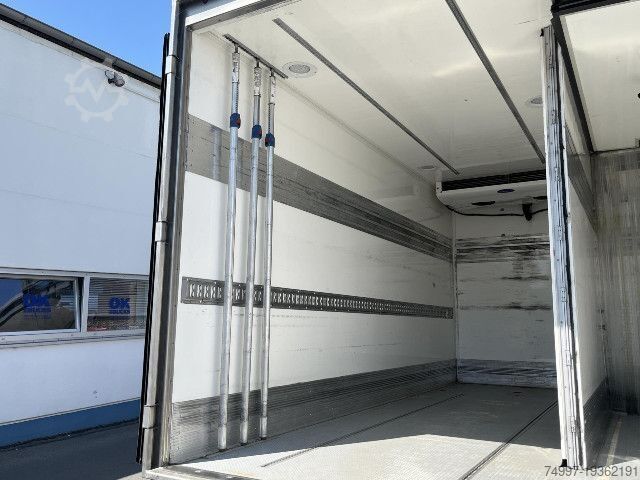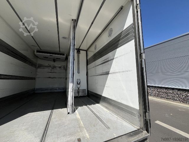 Color white IC 194, empty weight: 5250kg, permissible total weight: 7200kg, loading space (L W H): 4,550 mm x 2,490 mm x 2,140 mm, loading space volume: 24 m³, fabric seats, leaf air suspension, 1 x airbag, tail lift, digital tachograph, electric stability program ESP, automatic climate control, comfort seat for driver, hydraulically damped driver's seat, armrest for driver, seat heating for driver/front passenger, front passenger seat for 2 people, radio/CD with MP3: with RDS and MP3, multi-function display, mobile phone preparation Bluetooth, lane departure warning, reversing camera, multifunction steering wheel, lumbar support for driver, electric windows, outside temperature display, electric and heated exterior mirrors, central locking. with remote control, tinted glass, storage box, - Construction: - freezer box from STS - 1-chamber: 4,550mm x 1,620mm x 2,140mm - 2-chamber: 4,550mm x 0.920mm x 2,140mm - Side door right, portal doors rear - Cooling: Carrier Supra 850 MT SILENT / diesel/electric -20 degrees deep freeze - Tail lift BÄR 1,000KG - HU/AU valid until Maintenance service / Service NEW, errors and changes excepted