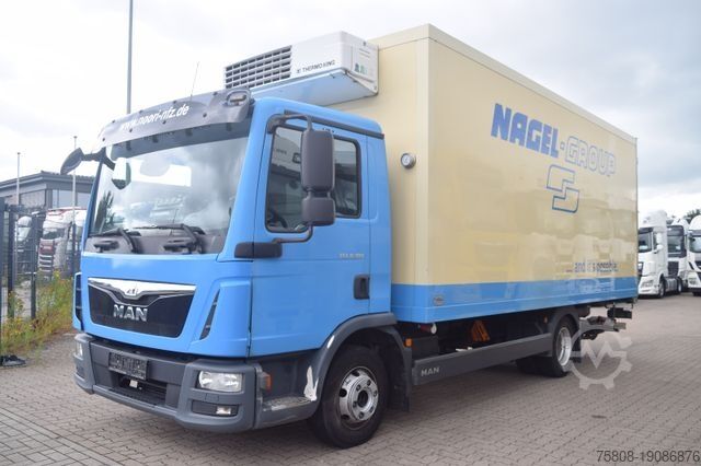 MAN TGL 8.180 4x2 refrigerated box body, Thermoking unit, V-800 Max drive cooling system, Dhollandia tail lift lifting capacity 1000kg, gearshift door, local traffic cab, leaf-air suspension, sun visor, aluminum rims, CD/radio