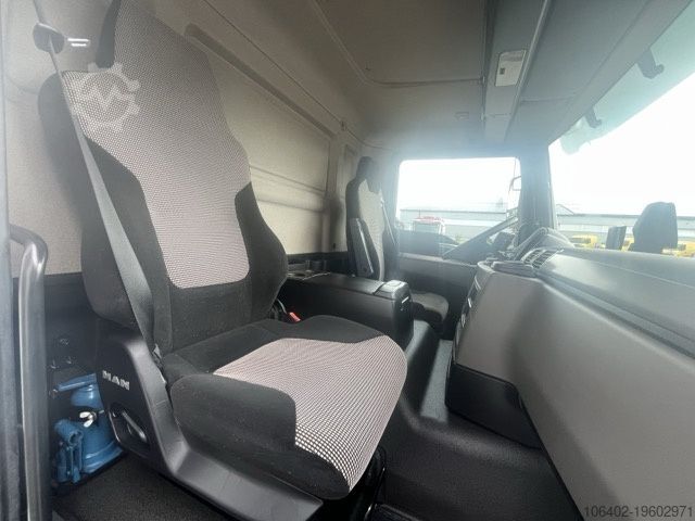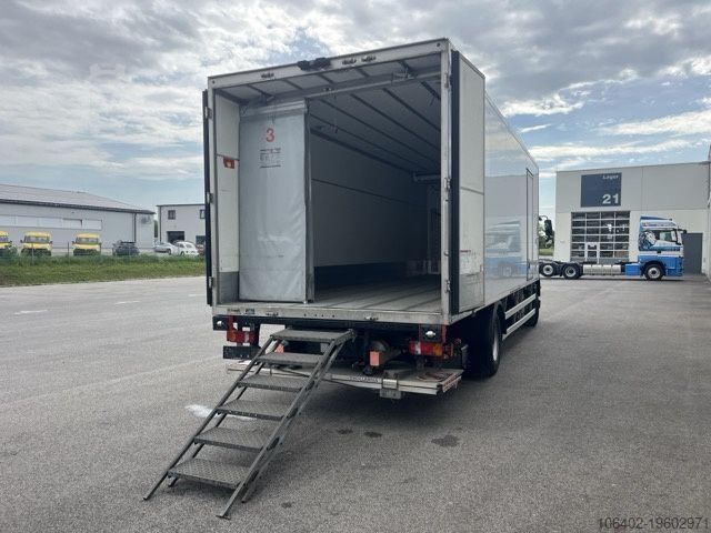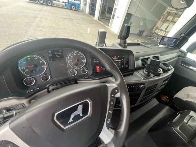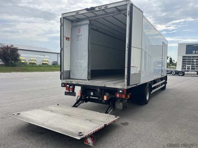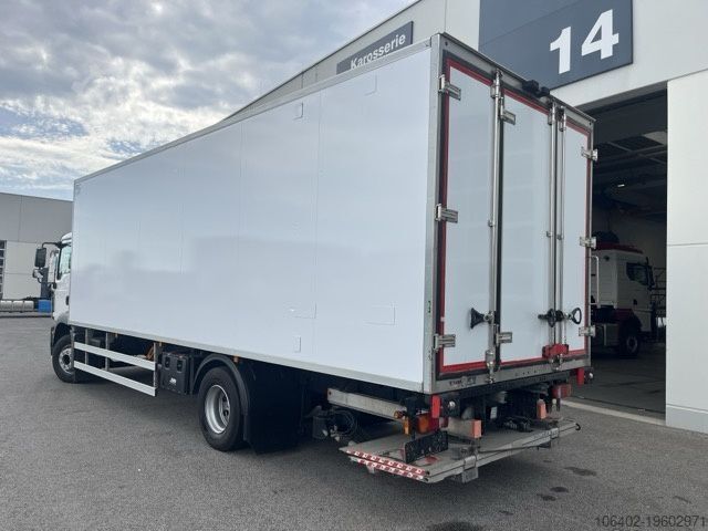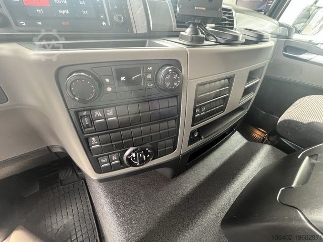 Unladen weight: 9,310 kg, permissible total weight: 16,000 kg, cargo space (L x W x H): 7,800 mm x 2,460 mm x 2,300 mm; tire size: 305/70 R19.5; cargo space volume: 44 m³. First and second axle details available. Air suspension, foldable aluminium tail lift: Dholandia DHSM 15, 1,500 kg; electronic braking system (EBS), electronic stability program (ESP), traction control system (ASR), air-suspended driver's seat, reversing camera, electric windows, outside temperature display, roof spoiler, fog lights, electrically adjustable mirrors, tinted glazing, sun visor, cup holder, rubber floor covering, temperature recorder, storage box, trailer brake connection. Brake pads, front axle: 78%-76%, rear axle: 76%-75%. 8,367 operating hours on truck. Service intervals as follows: engine oil 07/2026, air filter & air dryer 01/2027, axle oil 02/2027, cooling system and steering (front axle) 03/2027, gearbox oil 01/2028. Refrigeration unit: TK T-1200R, ATP valid until 08/2028. Subject to errors and changes. Annual inspection of refrigeration unit conducted at TK Vienna in June 2025.