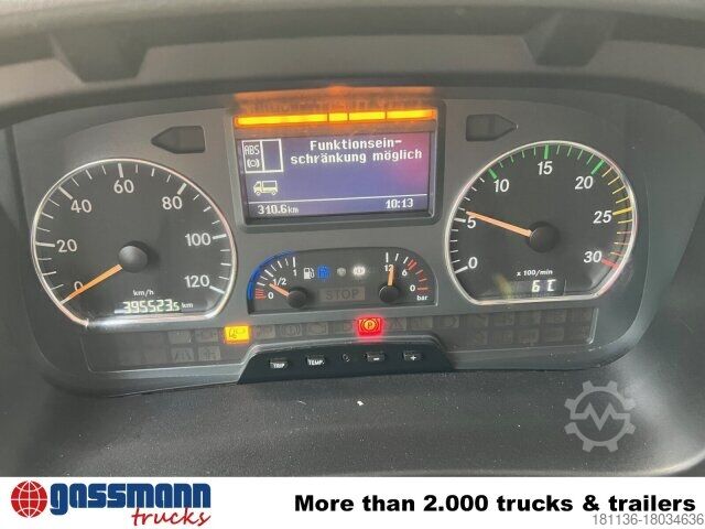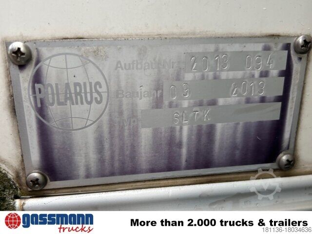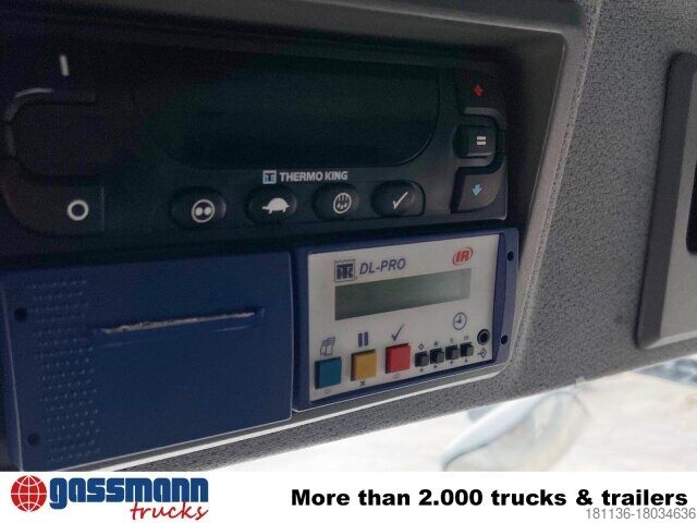 Wheelbase: 3620 mm Body: refrigerated box with side door on the right, ThermoKing T 800 R refrigeration unit (electric/diesel), partition wall and 1 t tail lift MBB 1000K 3.5 t front axle, rear axle H2 6.2/7.2 t disc wheel 325, Telligent brake system with ABS, disc brakes on front and rear axle, rear axle stabilizer, distributor cockpit, pollen filter, on-board diagnostics 2, engine start/stop system.