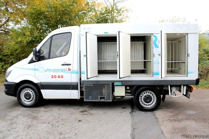 Power/engine : 2,143 cm³, with turbocharger Transmission : 6-speed Axles : 4x2 Brakes : ASR, disc brakes Cab : Tinted glass, Power windows, Power mirrors, Exterior temperature display, Radio audio system Exterior mirrors, Exterior temperature display, Audio system radio Refrigerated body : Cold Car, Bunker doors/ice, 3 doors left, No. of doors right 3 doors, Fixed partition Refrigeration unit : Eutectic storage cooling, Cooling down to -33 °C Other equipment : Power steering, immobilizer ID 117881 Ice-cold body Cold Car, bunker doors/ice, 3 doors left, 3 doors right Electronic Stability Program (ESP9i) Front axle stabilizer Hill start assist Battery management Radio Heated and electrically adjustable exterior mirrors Storage above windscreen 6-speed manual gearbox ECO Gear Wheelbase 3250 mm 3,5 Tonner Seat belt warning system for driver's seat Gearshift indicator Service interval indicator ASSYST Adaptive brake light Daytime running light Emission class Euro 5b+ N1 Engine OM 651 DE 22 LA 70 kW (95 hp) 3800/min TEMPOMAT Spare wheel Airbag driver Smoking package Fabric Tunja black Weight variant 3.200 kg Plate cooling is a cooling system that uses eutectic plates to maintain a suitable temperature level. The passive plates are connected to the power supply (220V) overnight. The solidification point of the eutectic solution is -33°C. The eutectic plates are used to maintain the temperature of the already frozen product. We always have a large selection of used cooling and ice cooling vehicles in stock. You can find more from our range under Non-binding offer, sale only to traders, errors and prior sale reserved Advertisements and company logos on vehicles may have been digitally processed on photos
