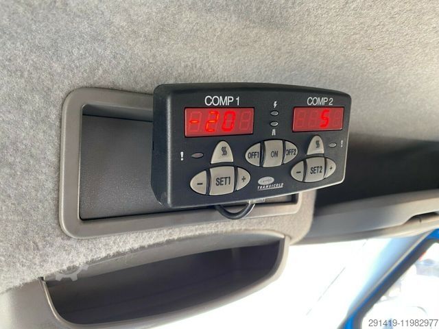 1 DIN slot at the front under the roof liner, Audio 10 audio system (radio with CD player), outside temperature display, steering wheel (steering column mechanically adjustable), spare wheel in driving tires, spare wheel holder under the end of the frame including jack, mud flaps at the front, seats in the driver's cab: comfort passenger seat, seats in the driver's cab: comfort suspension seat, driver's side, reinforced rear stabilizer, reinforced front stabilizer, rear paneling, reinforced front axle, additional heating (air) electric
