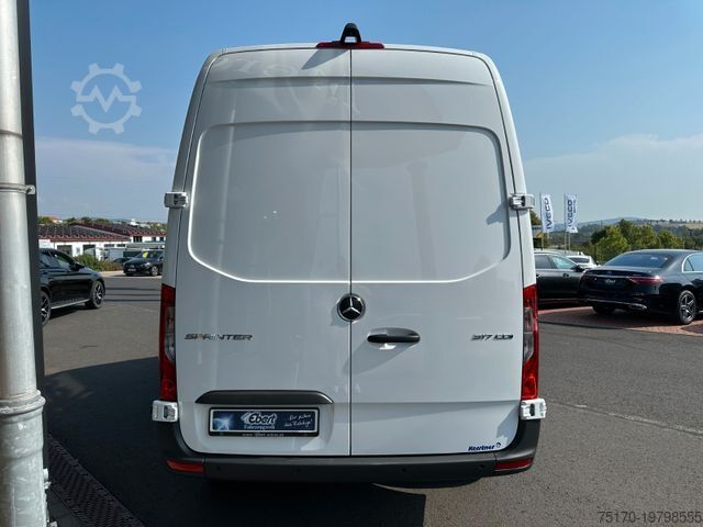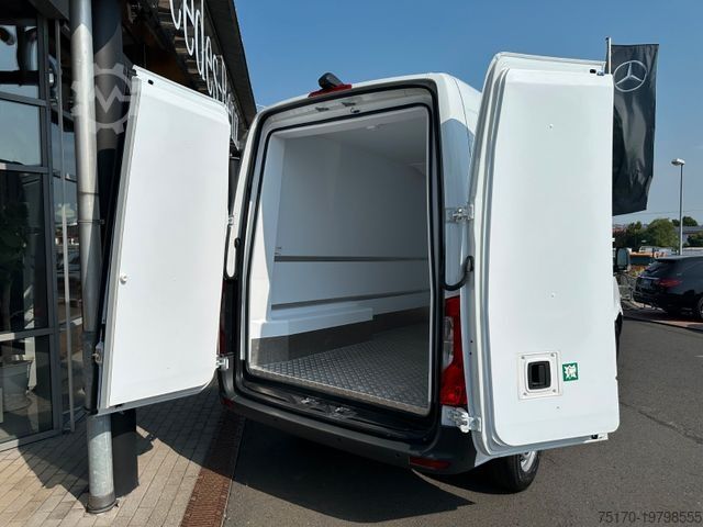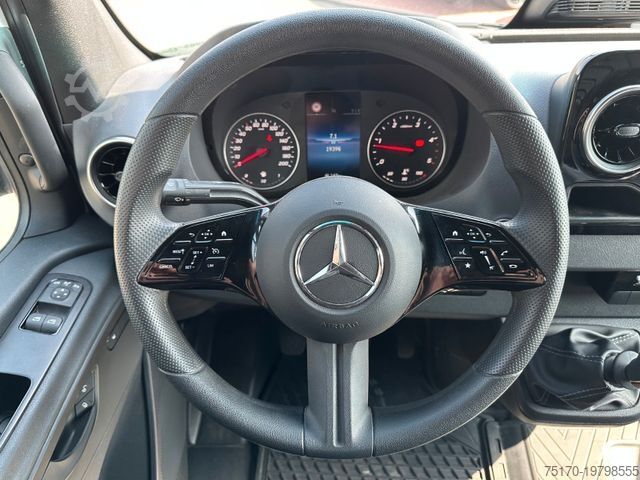 Third brake light, storage compartment above windscreen, storage compartment below dashboard on passenger side, rear towing eye, adaptive brake light, driver's airbag, traction control system (ASR), washer fluid level indicator, both exterior mirrors electrically adjustable and heated, outside temperature display, automatic headlights, entry handle for sliding door at cargo area partition, electronic brakeforce distribution (EBD), driver assistance system: breakdown management, driver assistance system: crosswind assist, external noise reduction, body/structure: high-roof panel van (standard), keyless start, child lock, communication module (LTE) for digital services, continuous cargo area partition, steering wheel (steering column mechanically adjustable), headlight range adjustment, truck registration, Mercedes-Benz emergency call system, engine 2.0 L - 125 kW CDI CAT, radio preparation, wheelbase 3,665 mm, low-emission according to Euro 6d, right sliding door for load/passenger area, seat belt system with warning device (passenger), seat belt system with warning device (driver), seat cover/upholstery: fabric, seats in driver's cab: adjustable driver’s seat, steel wheels 6.5x16, engine start/stop system, AGM battery 92 Ah, service interval indicator Assyst, gross vehicle weight 3.50 t.