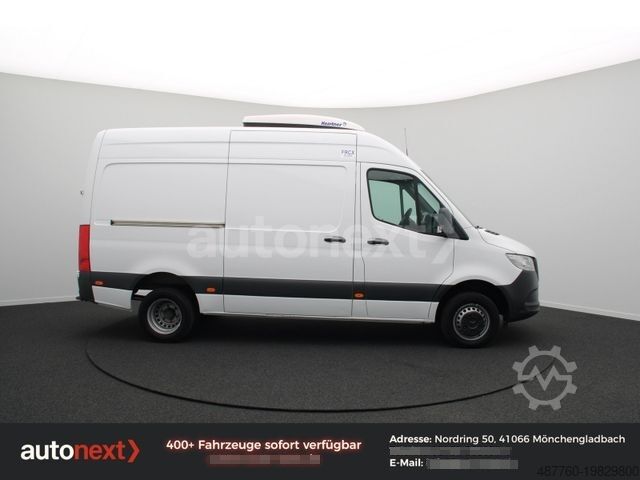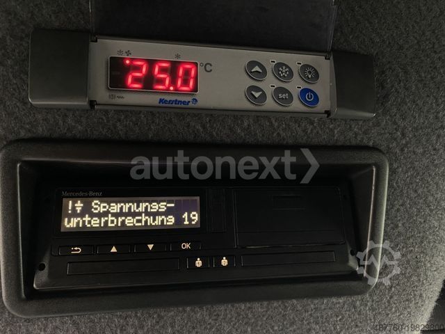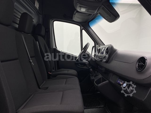 3rd brake light, storage compartment above windscreen, adaptive brake light, driver's airbag, Hill Start Assist, Anti-lock Braking System (ABS), Traction Control System (ASR), Drive: rear-wheel drive, washer fluid level indicator, electrically adjustable and heated exterior mirrors (both sides), outside temperature display, headliner in driver’s cab, automatic headlight activation, grab handle for sliding door on cargo area partition, Electronic Brakeforce Distribution (EBD), Electronic Stability Program (ESP), Driver assistance system: Active Brake Assist, Driver assistance system: Crosswind Assist, Driver assistance system: Lane Keeping Assist, Digital tachograph, download capable, electric window lifters (2x), 6-speed manual gearbox - TSG (Eco Gear), Body/structure: high-roof van (standard), Keyless-Start, child safety lock, Communication module (LTE) for digital services, main fuel tank 71 ltr., solid cargo partition, steering wheel (adjustable steering column), headlight range adjustment, Mercedes-Benz emergency call system, engine 2.1 ltr. - 120 kW CDI CAT, particulate filter, wheelbase 3665 mm, low emissions according to Euro 6, sliding side door loading/passenger compartment right, driver's seatbelt system with warning device, upholstery: fabric, Seats in cabin: driver's seat with armrest, Seats in cabin: driver’s seat adjustable, daytime running lights, Trailer Stability Assist (TSA), service interval indicator Assyst, immobiliser, heat-insulating glazing (windscreen with top strip), remote central locking, permissible gross vehicle weight 5.00 t.