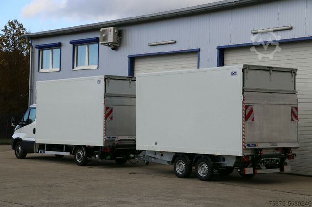 Iveco Daily 35S18HA8/P box body with trailer as a through-loading train.