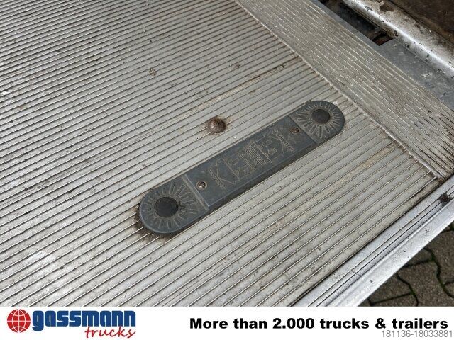 Vehicle location: Bovenden, license plate at dealership. Double passenger seat, auxiliary heater, 5-speed manual transmission, ABS (Anti-lock Braking System), traction control (ASR), roof spoiler, leaf suspension, tow bar with ball head, low-noise G1, lashing rails, underbody protection, right side door, standing aluminum tail lift, yellow environmental badge.