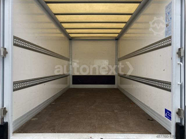 Overhead storage above the windshield, storage compartment below the passenger side dashboard, rear towing eye, adaptive brake light, driver airbag, anti-lock braking system (ABS), traction control system (ASR), drive: rear-wheel drive, washer fluid level indicator, electrically adjustable and heated exterior mirrors (both sides), outside temperature display, brake assist, cab roof lining, automatic driving light activation, electronic brakeforce distribution (EBV), electronic stability program (ESP), driver assistance system: Crosswind Assist, electric windows (2x), 200A alternator, 6-speed transmission (Eco Gear), bodywork: standard flatbed, keyless start, communications module (LTE) for digital services, steering column (mechanically adjustable), headlight range adjustment, truck approval, lateral marker lights, Mercedes-Benz emergency call system, engine 2.1 l – 120 kW CDI CAT, particulate filter, wheelbase 4325 mm, low-emission Euro 6 standard, seat belt warning system (driver’s side), seat covers/upholstery: fabric, cab seats: driver's seat with armrest, start/stop system.