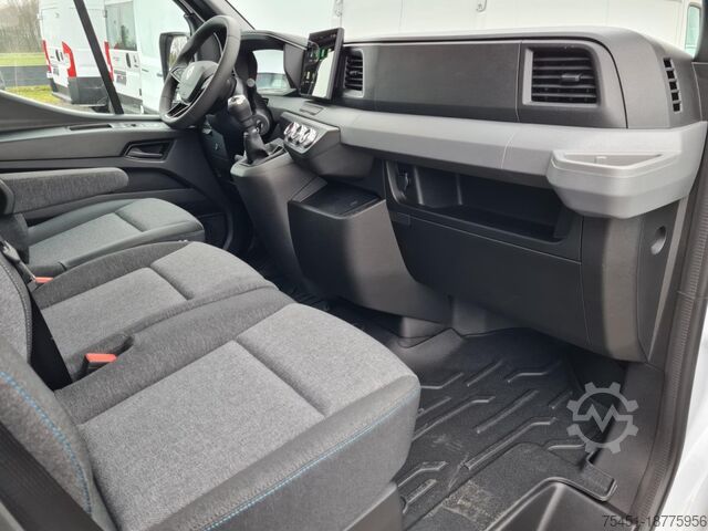 Navigation via mobile phone possible. Wind deflector with side panels, air conditioning, central locking with remote control, electrically adjustable and heated exterior mirrors, electrically operated front windows, onboard computer, multifunction display, emergency braking system, traffic sign recognition system, driver fatigue warning system, cruise control, speed limiter, multifunction steering wheel, rear parking assist, partition wall, spare wheel with road tires, summer tires, light and rain sensor, LED daytime running lights, fog lights, radio with 10-inch multimedia system and wireless smartphone mirroring, touchscreen, Bluetooth hands-free system, USB interface, Apple CarPlay, Android Auto, tire pressure monitoring system, RCall system, long wheelbase, heat-insulating glazing, storage package, tachometer, driver's airbag, anti-lock braking system (ABS), traction control (ASR), comfort seats, center armrest, driver comfort seat height-adjustable with armrest and lumbar support, start/stop function, particulate filter, full service history, immobilizer, box body, side marker lights, outside temperature display, power steering, lashing eyes and floor rails, rear door frame – stainless steel, rear doors with bolt lock, rear step, main frame extension in vehicle color, multifunctional double passenger seat, steering column with height and reach adjustment, lockable glove compartment, heated windshield, rear mud flaps, gear shift indicator, interior filter: pollen filter, overhead storage shelf, permitted gross weight 3.50 t, electronic brake-force distribution, brake assist, lane keeping system, electronic stability program (ESP), body/build: box body, wheelbase 4215 mm, drive type: front-wheel drive, 6-speed transmission. Over 150 transporters and buses in stock. Financing or leasing available through Santander Consumer Bank, Bank 11 or Auto Europa Bank, we are happy to advise you. This offer is non-binding, no guarantee for equipment details. Listed equipment may need to be checked separately. Subject to change, errors, and prior sale. Delivery available for an additional fee. Export license plates available on site. Trade-in of your used vehicle possible. Retrofit options available for: - Tow bars up to 3,500 kg - Auxiliary heaters - Monitor for reversing camera and/or navigation via smartphone (Android Auto) - Reversing system with rear camera - Workshop equipment - Cruise control - Retrofitting of tail lift (LBW) and other individual solutions for your business needs available at extra cost.
