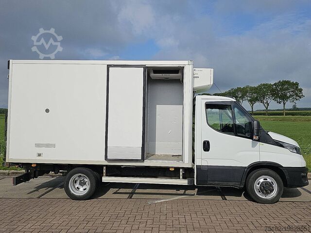 Configuration: 4x2, twin tires, curb weight: 3,085 kg, gross weight: 3,500 kg, cab type: single cab, number of airbags: 1, parking assistance: none, electric windows, radio/cassette, color: white, lighting type: halogen lamp, Bluetooth, engine power: 100 kW (134 Hp), fuel: diesel, Euro: 6, drive technology: timing belt, transmission type: manual, gears: 6, power steering, ABS, ASR, starter battery, rear step, roof rack: none, side doors: 1, rear closure: double doors, central locking, seats: 3, seat configuration: 1+2, seat upholstery: fabric, seat adjustment: manual, refrigeration unit manufacturer: Thermoking, refrigeration unit model: V-500 max, refrigeration unit: Compressor / electric, body insulation, cooling type: cooling and freezing, day/night cooling: day cooling, additional evaporator, refrigerated van Day/Night BI-TEMP/ FRIGO Twin Axle Euro6!, tire type: summer tires