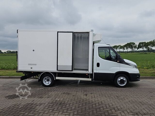 Configuration: 4x2, twin rear wheels, unladen weight: 3,085 kg, gross weight: 3,500 kg, cab type: single cab, number of airbags: 1, rear wiper, parking assist: none, electric mirrors, partition wall, radio/cassette, colour: white, lighting type: halogen lamp, Bluetooth, engine power: 100 kW (134 hp), fuel: diesel, Euro 6, drive technology: timing chain, transmission type: manual, gears: 6, power steering, ABS, ASR, starter battery, rear step, roof rack: none, side doors: 1, rear closure: double doors, central locking, seating capacity: 3, seating configuration: 1+2, seat upholstery: fabric, seat adjustment: manual, reefer unit manufacturer: Thermoking, reefer unit model: V 500 max, reefer unit: electric, ATP condition: 0, box insulation, heating, cooling type: chilling and freezing, day/night cooling: day/night cooling, refrigerated van Day/Night BI-TEMP / FRIGO twin wheels Euro6!, tyre type: all-season tyres
