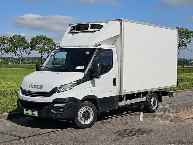 Configuration: 4x2, Payload: 974 kg, Unladen Weight: 2526 kg, Gross Weight: 3500 kg, Unbraked Towing Capacity: 750 kg, Braked Towing Capacity Center Axle: 3500 kg, Cabin Type: Single Cab, Cruise Control, Tachograph (Recording Device), Air Conditioning, Number of Airbags: 1, Parking Assistance: Rear, Electric Windows, Electric Mirrors, Partition, Radio/Cassette, Color: White, Heated Mirrors, Rear View Camera, Lighting Type: Halogen Lamp, Speed Limiter, Bluetooth, Engine Power: 114 kW (153 Hp), Fuel: Diesel, Euro: 6, Drive Technology: Timing Chain, Transmission Type: Automatic, Speed Limiter, Power Steering, ABS, ASR, Starter battery, Roof rack: None, Side doors: 1, Rear lock: Single door, Central locking, Seats: 3, Seat upholstery: Fabric, Seat adjustment: Manual, Cooling engine manufacturer: Carrier, Cooling engine model: Pulsor 400MT8/8 R2, Cooling engine: Compressor/electric, Body insulation, Heating, Suspension, Cooling type: Cooling, Day/night cooling: Day/night cooling, Additional evaporator, Refrigerator truck FRIGO Export Euro6!, Tire type: Summer tires