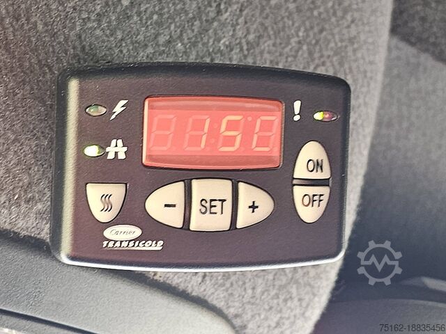 Number of axles: 2, Configuration: 4x2, Payload: 930 kg, Unladen weight: 2,570 kg, Gross vehicle weight: 3,500 kg, Trailer load, unbraked: 750 kg, Trailer load center axle, braked: 2,000 kg, Suspension type: leaf suspension, Cabin type: standard sleeper cab, Cabin version: single cab, Cruise control, Air conditioning, Number of airbags: 1, Parking assistance: none, Electric windows, Electric mirrors, Partition wall, Radio/Cassette, Color: white, Heated mirrors, Lighting type: halogen lamp, Speed limiter, Air conditioning, Heated seats, Engine power: 105 kW (141 HP), Fuel: diesel, Emission standard: Euro 6, Drive technology: timing belt, Transmission type: automatic, Speed limiter, Gears: 7, Power steering, ABS, ASR, Starter battery, Roof rack: none, Rear door: double door, Central locking, Number of seats: 3, Seat upholstery: fabric, Seat adjustment: manual, Cooling unit manufacturer: Carrier, Cooling unit model: Xarios 350, Cooling unit: compressor / electric, Cooling type: chilling and freezing, Day/night cooling: day/night cooling, L2H2, Refrigerated/freezer van, Day/night connection, Automatic, Xarios 350, Air conditioning, Cruise, 140 HP, Euro 6!, Spare wheel, Spare wheel tread: 6%, Tire type: summer tires