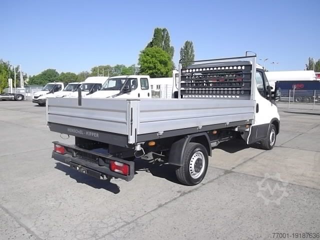 Color: White IC 194, empty weight: 2440 kg, permissible total weight: 3500 kg, loading space (L W H): 3495 mm x 2034 mm x 400 mm, loading space volume: 2 m³, leaf spring suspension, tow ball, driver's armrest, passenger bench seat for 2 people, radio: BT DIG. DAB, multifunction steering wheel, power steering, adjustable steering column, electric windows, electric exterior mirrors, wide-angle mirrors, immobilizer, folding side walls, HA 3.91, without body module, HENTSCHEL TIPPING PLATFORM 3495 x 2036 x 400 mm, long material carrier with driver's cab protection, errors and changes excepted.