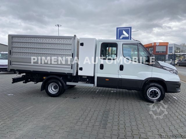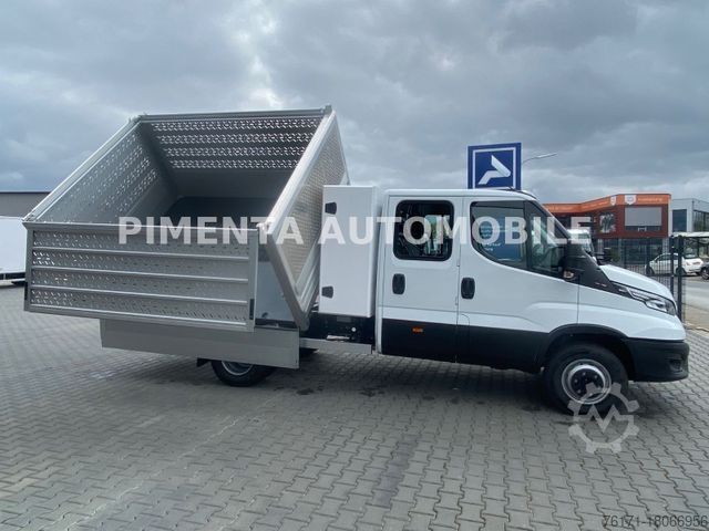 Iveco Daily 70C18HD MY24 wheelbase 3750mm double cab with a three-way tipper, aluminum grille, large storage box and trailer coupling.