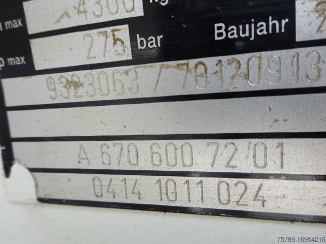 Airbag driver's side, Trailer brake 2 - line, Trailer coupling: Rockinger, Trailer socket 13-pin, Trailer socket ABS, Exterior mirrors electr. adjustable, right, Differential lock rear axle, Hinged door right with window (entrance), Hydraulic pump (Meiller pump - 5 pistons - 254 / 1), Engine brake air-operated, Power take-off MB 56-2C, Radio preparation, Reinforced rear cross member, Side collision protection, Seats in cab: Driver's seat with hydraulic suspension, Voltage converter 24V / 12V 8 A, Reinforced rear axle stabilizer, Reinforced front axle stabilizer, Fixed rear underride guard
