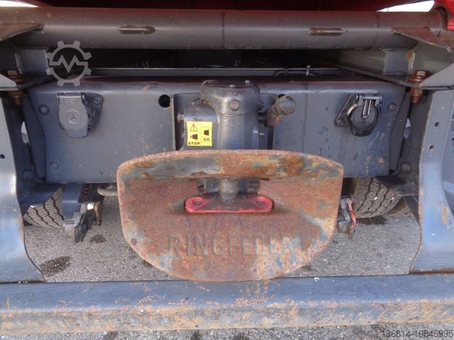 Vehicle no. 2862, ABS and ASR, ESP, disc brakes, rear axle differential lock, wheelbase 3,020 mm, S cab with rear window, roof hatch, driver's air-suspended seat, multifunction steering wheel, 3-seater, 6-speed manual gearbox, electric windows, immobilizer with transponder, leaf suspension front and rear, 120L diesel tank, 25L AdBlue, high performance engine brake, EURO6, cruise control, tires: 237/75 R17.5, trailer coupling with air and electrical connections, power take-off, Meiller tipper, standard three-way tipper, 4000 x 2350 x 400 mm, full service history at MB, one owner, Inquiries welcome. Subject to errors and prior sale.