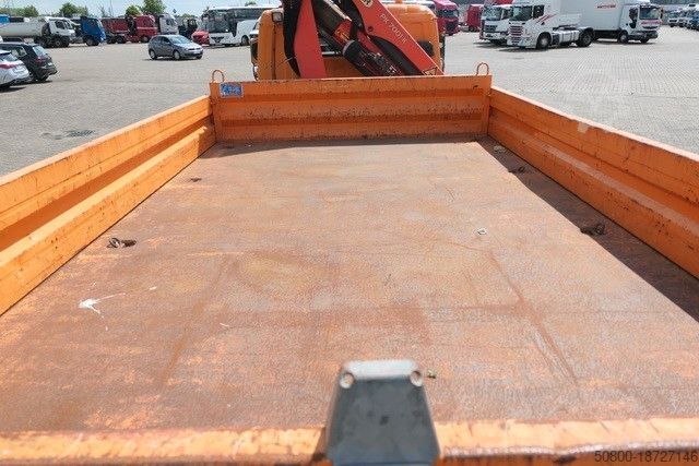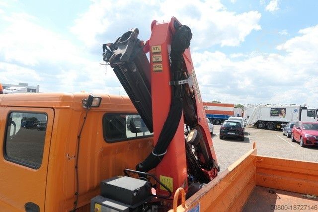 Двойная кабина с 4 дверями, опрокидывающаяся на 3 стороны конструкция, 6 пар ниш для крепления, встроенных в пол, тип среднего крана PALFINGER: PK 7001-KA, 2-точечная опора, напольное управление слева и справа, управление грейфером, 2-ступенчатая гидравлика. выдвижная, макс. грузоподъемность 3200 кг, схема: прибл. 3,2 м - 1760 кг, 5,0 м - 1200 кг, 7,0 м - 870 кг, коробка отбора мощности, система стабилизации, ABS, моторный тормоз, блокировка дифференциала заднего моста, режим EcoRoll, кондиционер, автономный отопитель, эл. Стеклоподъемники для дверей водителя и пассажира, подогрев наружных зеркал, стандартное сиденье водителя, двухместное сиденье пассажира, 2 проблесковых маячка, автоматические дневные ходовые огни, противотуманные фары, шаровое и фаркопное соединение, ящик для хранения вещей, рессорная подвеска, транспортное средство может быть покрыто рекламой и/или надписями