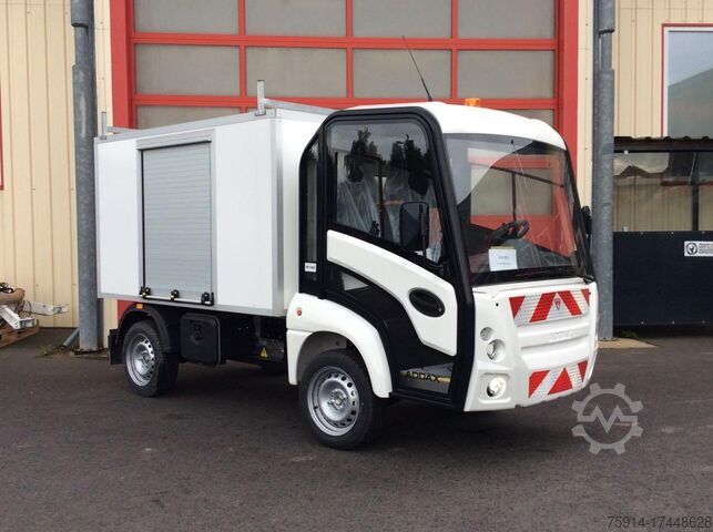 First registered: August 31, 2023_____Equipment:- Ultra-high-performance lithium/iron/phosphate (LiFePo) battery memory effect - including battery heating- Remote diagnosis - 4G vehicle monitoring, online troubleshooting with factory support- Closed glass cabin, cigarette lighter, longitudinally adjustable driver's seat, 2 large shelves and interior lighting- Left-hand drive with driver's seat (left) and passenger seat (right)- Color: white (RAL 9016)- All-season tires- European road approval: N1- Charger LiFePo 220V 16A (maximum charging time 6.5 hours)Special equipment:- Power steering- Hill start assist - Rotating warning light - Class R65 TA1- Double DIN radio with Bluetooth, AUX, hands-free system and rear view camera- Box body (LxWxH) approx.: 2100 x 1450 x 1200 mm - walls and roof made of sandwich material - floor made of anti-slip screen-printed board - auxiliary frame for mounting on chassis longitudinal beams - 1 x aluminum roller shutter in the rear, across the entire width and height - each side: 1 roller shutter (approx. 800 mm wide) - including airline rails mounted on the inside of the floor - rotating beacon with warning marking - interior LED lighting switchable via its own switch in the driver's cab - roof rack mounted on the box body as a ladder holder - welded from steel profiles and hot-dip galvanized - vertical tiller on the right and left for attaching the load - with airline rails for quick load securing, storage location: Gondelsheim hall