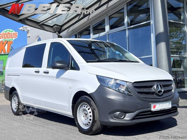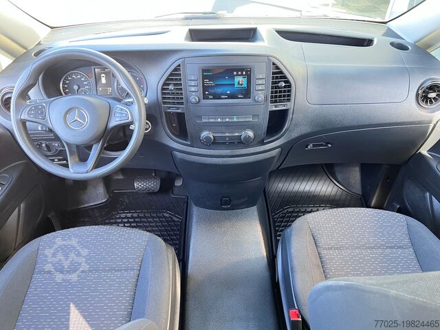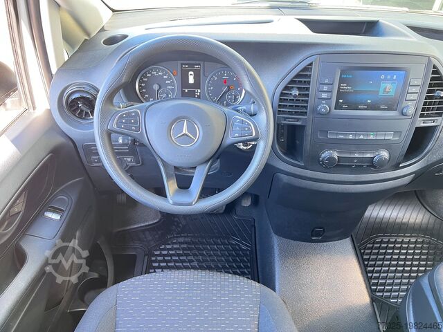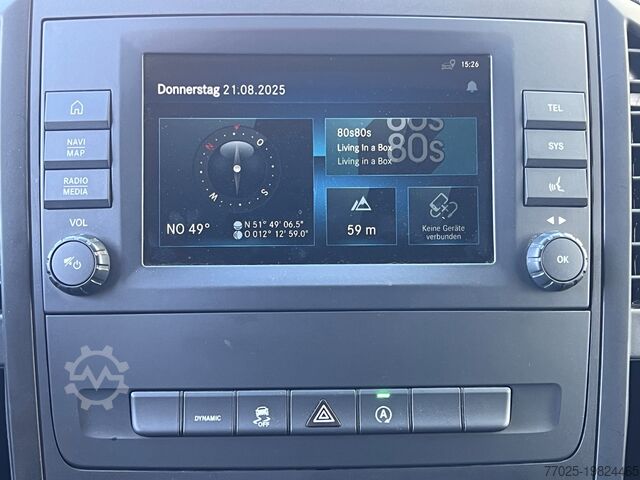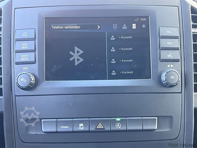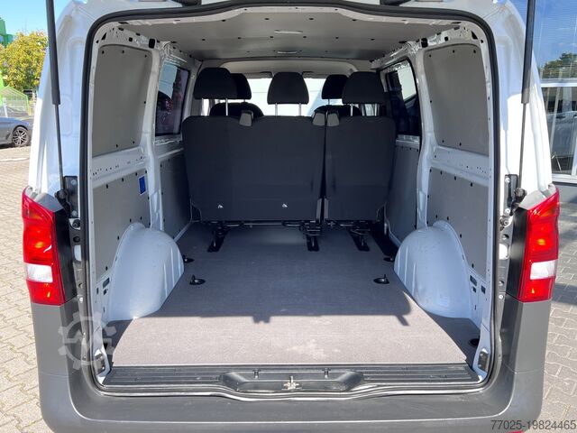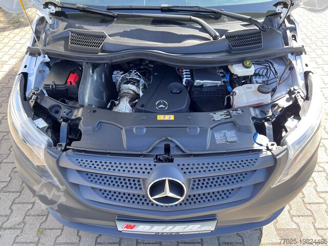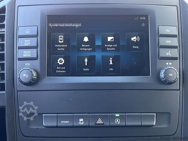 Sliding door on right side of cargo/passenger compartment with window, interior rearview mirror, roof lining, warm air duct to cargo/passenger area, windshield with antenna, service interval display (ASSYST), model update, instrument cluster with pixel-matrix display, roof light in cargo area, SCR system (AdBlue technology), urea tank (AdBlue): 24 liters.