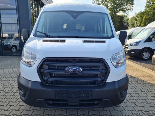 Automatic transmission (8-speed), air conditioning, trailer hitch, central locking with remote control, exterior mirrors electrically adjustable and heated, electric windows, onboard computer, driver assistance system: hill start assist, driver assistance system: emergency brake assist, cruise control, multifunction steering wheel, leather steering wheel, front and rear parking sensors, rear view camera, windscreen wipers with rain sensor, daytime running lights, fog lights, digital radio reception (DAB+), touchscreen, audio system: radio with USB and Bluetooth hands-free function, hands-free system, Apple CarPlay, Android Auto, tyre pressure monitoring system, slightly tinted heat-insulating glazing, rev counter, driver airbag, passenger airbag, anti-lock braking system (ABS), electronic stability program (ESP), cab seats: driver's seat with lumbar support, start/stop system, diesel particulate filter, right-side sliding door to load/passenger compartment, electronic immobilizer, rear seat package 3 (3-seater bench - 2nd/3rd row - wide), power steering, 9-seater, 2nd rear air conditioning with additional rear heating, passenger car registration for TRANSIT, seating package 13: driver's seat (4-way adjustable) - front double passenger seat - fabric, driver's seat armrest, technology package 2, audio/radio remote control on steering wheel, docking station (MyFord Dock), technology package 9, permitted gross weight 3.50 t, body variant: medium-high roof, radiator grille with chrome strip, integrated rear step, trailer stability program (TSA), indicator integrated in exterior mirror, cornering light in headlamp, adjustable intermittent windscreen wipers, rear mud flaps, audio system: radio, FordPass Connect incl. eCall, flooring: rubber in load/passenger compartment (full), lockable glove box, seats in load/passenger area: 2nd row - fixed, My Key (2nd programmable vehicle key), rear wing doors (opening angle 180 degrees), entry lighting, electronic brake-force distribution (EBD), steering column (steering wheel) adjustable in height/length, electronic traction control, driver assistance system: crosswind assist, Trend, body/build: high-roof combi (standard), wheelbase 3750 mm, drive type: front-wheel drive, over 150 transporters and buses in stock. Financing or leasing possible via Santander Consumer Bank, Bank 11 or Auto Europa Bank, we are happy to advise you. This offer is non-binding, no guarantee for equipment details. Listed equipment may need to be checked separately. Changes, errors, and prior sale reserved. Delivery available for an additional charge. Export license plates available on site. Trade-in of your old vehicle possible. Retrofitting available for: - Tow bars up to 3500 kg possible - Auxiliary heaters - Screen for rear view camera and/or navigation via smartphone (Android Auto) - Reverse system with rear camera - Workshop equipment - Cruise control - Retrofitting a tail lift and other individual solutions for your business needs available for an additional charge.