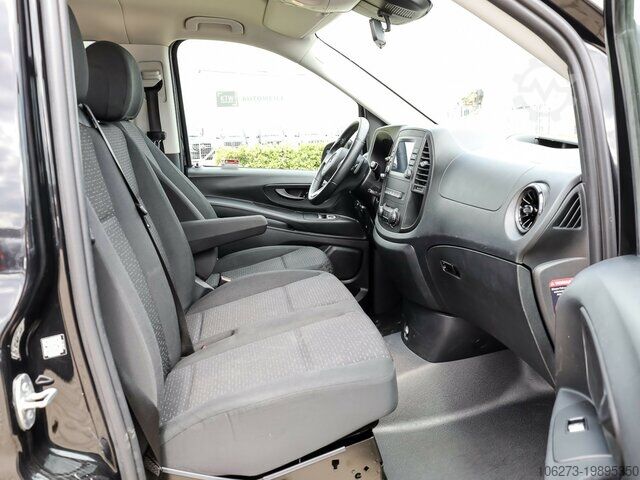 Interior trim, double passenger seat, disc brakes, extra-long, clock & tachometer, brake wear indicator, auto-dimming exterior mirrors, heat-insulating glass, metallic, 4-door, one owner, Euro 6d_Temp, green environmental badge (4), tire repair kit, tinted windows (privacy glazing), steel wheels, reversing camera, black, front side airbags, passenger airbag, front window/head airbags, right-hand sliding door, navigation system with color monitor, color monitor for navigation, shift paddles, front parking sensors, rear parking sensors, parking assist, parking camera, dual electric windows, radio, radio/MP3, outside temperature display, tinted glass, heated exterior mirrors, power steering, electrically adjustable exterior mirrors, comfort seats, detachable tow bar, rear-wheel drive, third brake light, German version, new inspection/emissions, more features available, errors and prior sale reserved, trade-in possible, financing possible – please contact us for a tailor-made offer.