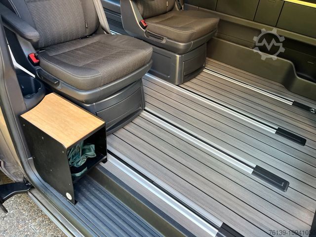 Special equipment: Waste bin, Discover Media Plus audio-navigation system (touchscreen color display), electrically adjustable, heated, and power-folding exterior mirrors, plastic flooring in a wood-look design in the cargo/passenger compartment, driver assistance system: front and rear parking assist with reversing camera, freewheel clutch for dual-clutch transmission, insulated and heated windshield, Climatronic automatic climate control (driver's cab and cargo/passenger compartment), metallic paint, 7x17 alloy wheels (Cascavel, anthracite), Comfort mobile phone interface, LED headlights and taillights, seats in the driver's cab: heated driver and front passenger seats, seats in the cargo/passenger compartment: second row, 2 individual seats, voice control system with electronic voice amplification, auxiliary heater with remote control, timer, and booster heater, privacy glass at the rear, soft close assist for tailgate, soft close assist for right sliding door.