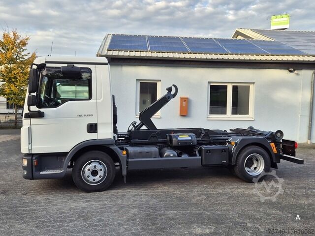 - the vehicle is immediately available - MAN TGL 8.190 BL City roll-off tipper - HU / AU new - container optional from 3900 EUR plus VAT. - New body from 2024 (lifting capacity 6000kg) for city containers approx. 3.5m to 4.0m gross vehicle weight: 7490kg - empty weight without container: 4780kg - payload: 2710kg - lane assistant - automatic - comfort seat - multifunction steering wheel - seat heating - air conditioning - trailer coupling 11265kg - ball head coupling towing capacity: 3500kg - rear axle air-suspended - axle load vo. 3400kg, axle load hi 5200kg - 2x working lights - rear window - storage box - large stainless steel tray for belts or tarpaulin - hydraulic connection for tipper trailer optionally possible - painting cab in desired RAL at TGL flat rate optionally possible - subject to errors and prior sale! - More information, further XXL pictures, directions, on our homepage: - For inquiries in English please call