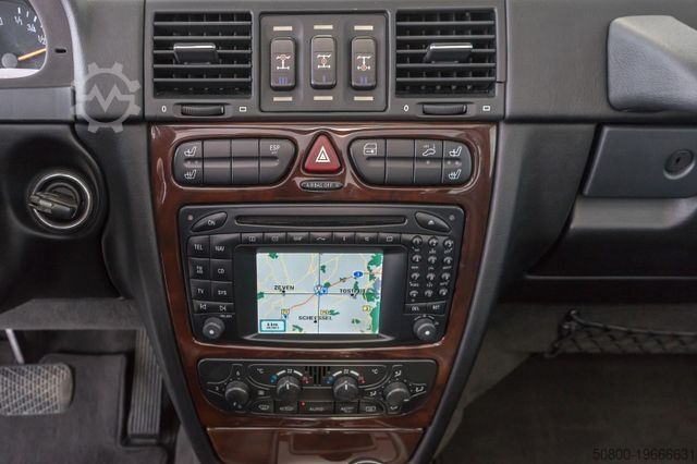 ESP, шаровая головка AHK, нагрузка на прицеп: 2850 кг с тормозами, Comand, автоматическая коробка передач с блокировкой переключения передач, постоянный полный привод, электропривод наружных зеркал. регулируемый и подогреваемый, CD-чейнджер, электрические стеклоподъемники, автоматический кондиционер (термотроника), дополнительный обогрев, противотуманные фары, дворники с датчиками дождя, гидроусилитель руля, многофункциональный руль из кожи/капа, мультиконтурное сиденье с подогревом сиденья водителя и переднего пассажира, круиз-контроль, центральный замок, запасное колесо с крышкой из нержавеющей стали, боковая подножка, система громкой связи для мобильного телефона с UHI, сигнализация, система автопилота с компакт-диском, ориг. Брезент МБ черный с сумкой.