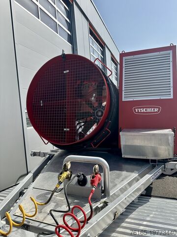 The fan is operated by its own engine drive and can be leveled. The fan is equipped with an external water injection system (Storx). The semi-trailer can be towed with a Rockinger towing hitch or pushed with a tow bar.