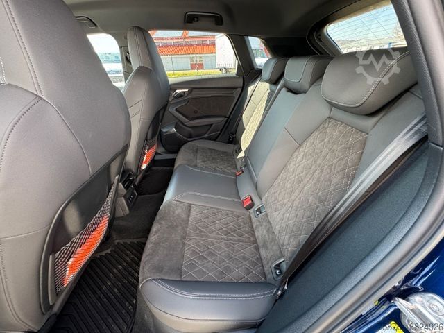 Storage and luggage compartment package, ambient lighting, trailer hitch preparation, Audi connect plus (internet-based services), electrically adjustable, heated, and folding exterior mirrors with automatic dimming and curbside assistance, Business package, aluminum roof rails, driver assistance system: high beam assist, electrically operated trunk lid (opening and closing), Gloss package, interior mirror with automatic dimming, S line interior package, low-rolling-resistance tires, front lumbar supports, electric. Adjustable, metallic paint, progressive steering, split/folding rear seat backrest (40:20:40), seat upholstery/cover: Alcantara/550 synthetic leather combination with embossed logo, heated front seats, Bang & Olufsen sound system, sound generator, tinted rear windows (privacy glass).