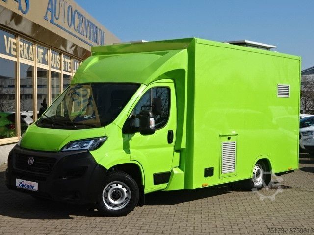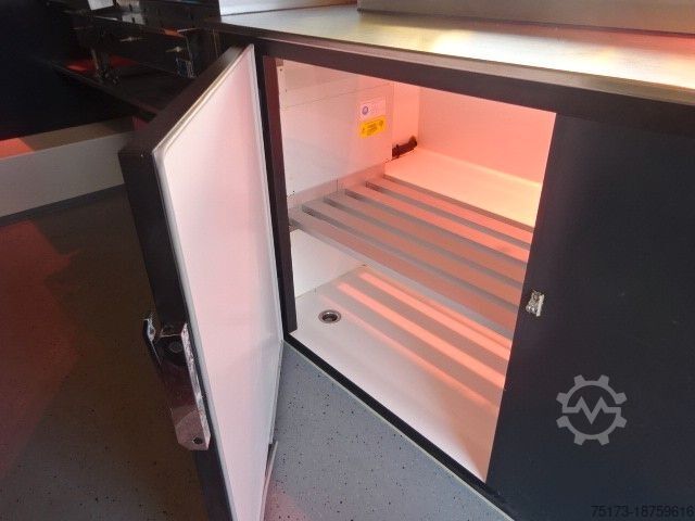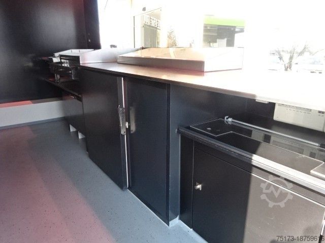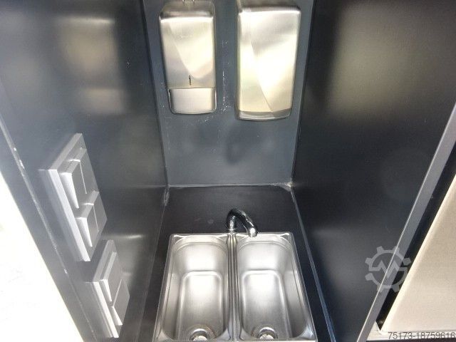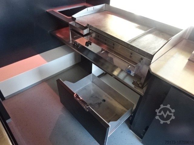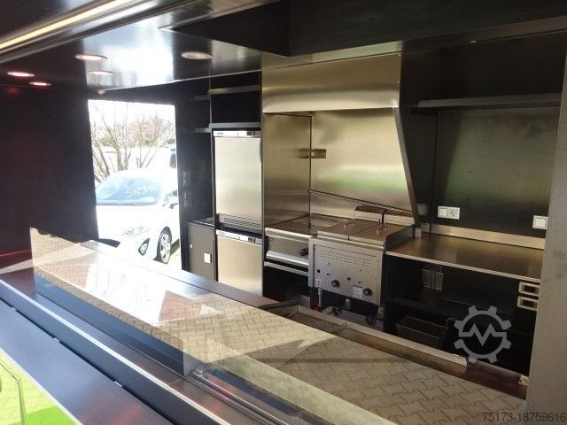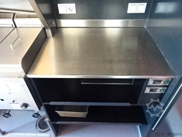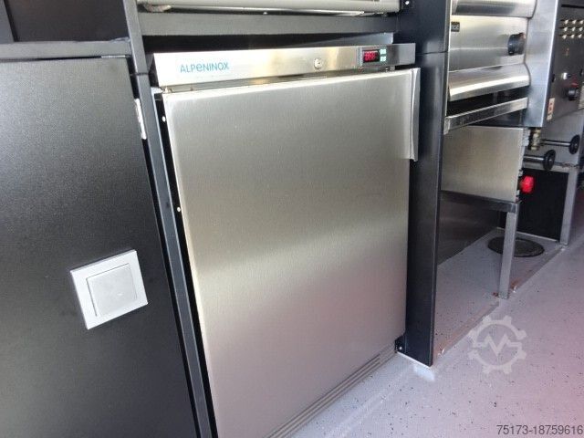 * SEICO sales vehicle with gas grill and stainless steel display, sink, refrigerator and deep fryer, cooling system, and LPG tank - Highly insulated Alutherm system body - Hot-dip galvanized Stabilight low-frame chassis - Mud flaps on both axles - Custom-painted sales body - Foldable advertising space next to the sales opening - Light bar under the sales hatch