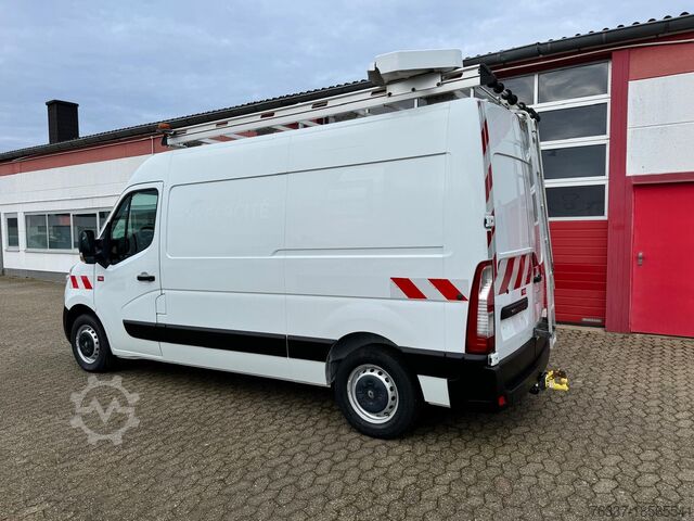The Renault Master is a robust and versatile commercial vehicle, ideally suited as a mobile workshop. In this configuration, it is equipped with a ladder attached to the rear doors. This enables easy access to the roof of the vehicle and facilitates loading as well as transport of goods on the roof rack with railings.