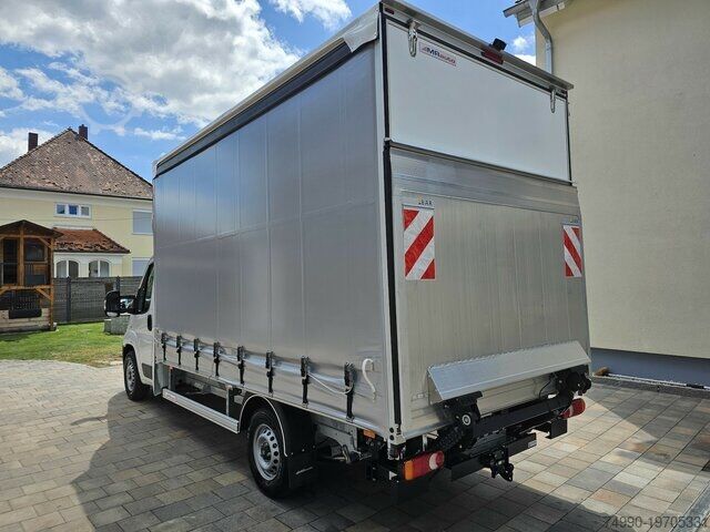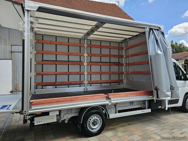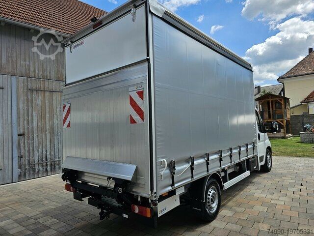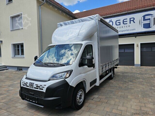 Fiat Ducato 2.2 MJ 132KW/180HP POWER Vehicle expected end of September (sample images) Latest 2025 Model Series 10 (9.2)! Syncom: 5.2 Platform with curtainsider body, sliding curtain left and right, roof and side spoilers, 3D cargo area Length: 4,230mm, Width: 2,110mm, Height: 2,300mm 8x lashing points – tool box – underrun protection Tail lift Bär 750 kg with roll-off protection Trailer coupling 3 tons MAXI version with 16-inch tyres and large brake system Gross vehicle weight: 3,500 kg Paint: 549 White 025 Air conditioning C7D. 7'' infotainment system with touchscreen + DAB + Android Auto, Apple CarPlay Navigation via Android Auto or Apple CarPlay 316 Reversing camera RS3 USB interface on dashboard 8RS Seat upholstery black with double stitching and padded headrest 835 Overhead storage shelf 878 Hubcaps 132 Centre armrest and lumbar support for driver's seat NHR Cruise control + speed limiter 041 Electrically adjustable and heated exterior mirrors 4B0 Cup/card holder 077 Double-leaf rear spring 293 Double passenger bench with table 786-980 Spare wheel in running gear with on-board tools 738 Tank 90 litres 033 Oil level check 692 Daytime running lights 806 Heated fuel filter 5EM Darkened headlights 500 Driver airbag 502 Passenger airbag 5F4 Safety Package Electronic Stability Control: - Crosswind Assist - Trailer Stability Control - Post Collision Braking - Rollover Prevention - Anti-Slip Regulation (ASR) - Hydraulic Brake Assist (HBA) - Hill Start Assist - Adaptive Load Control (LAC) Safety kit: - Emergency Braking Assistant (pedestrian and cyclist detection) - Lane Departure Warning - Traffic Sign Recognition - Drowsiness Detection - Intelligent Speed Assistant 5EM Darkened headlights 4DH 980 Full-size spare wheel with tools 5DE Start & Stop Automatic 0AA Ecopack with Stop&Start system incl. activation switch, intelligent alternator (200 A), electric fuel pump Financing or leasing offers available upon request.
