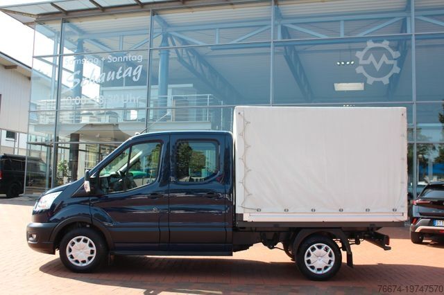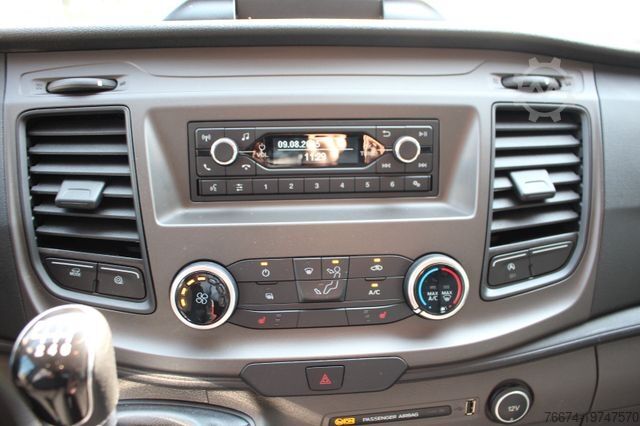 Overhead storage in driver's cab, driver's airbag, audio/radio remote control on steering wheel, audio system: radio with USB and Bluetooth hands-free kit, exterior mirrors electrically adjustable and heated, exterior mirrors with extended support arm, on-board computer, docking station (MyFord Dock), electronic brakeforce distribution (EBD), electronic traction control, driver assistance system: hill start assist, driver assistance system: side wind assist, windows in load/passenger compartment: fixed, 2nd row left, windows in load/passenger compartment: fixed, 2nd row right, FordPass Connect incl. eCall, vehicle without anti-lock braking system (ABS), reinforced alternator, lockable glove compartment, heater with recirculation function, interior lighting in driver's cab: front reading light, body/construction: double cab flatbed (standard), radiator grille with chrome trim, radiator grille black/grey, steering column (steering wheel) height and reach adjustable, engine 2.0 L – 96 kW TDCi CAT, My Key (2nd programmable vehicle key), digital radio reception (DAB+), wheelbase 3504 mm, rear seat package 1 (2 double seats, 2nd row, removable), low emissions according to Euro 6d-TEMP standard, steel wheels 6.5x16, start/stop system, Trend, lightly tinted heat-insulating glazing.
