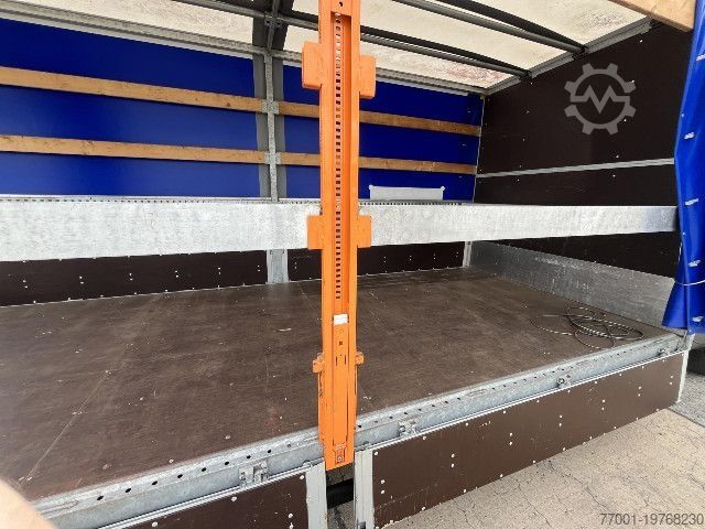 Unladen weight: 3300 kg, permissible total weight: 7200 kg, cargo space (L x W x H): 5300 mm x 2100 mm x 2200 mm, cargo space volume: 24 m³, fabric seats, air suspension, 1 x airbag, tachograph, automatic climate control, comfort driver's seat, hydraulically damped driver's seat, passenger bench seat for 2 people, LED headlights, digital DAB radio reception, lane departure warning, leather steering wheel, electric windows, electric exterior mirrors, central locking with remote control, twin tires, storage package, fire extinguisher holder, LED daytime running lights, spare wheel holder, cornering light, - split sliding tarpaulin on the right - new MOT/AU - new maintenance service - 12-month used car warranty on the drivetrain - 1 previous owner - well-maintained condition, subject to sale and modifications