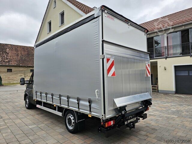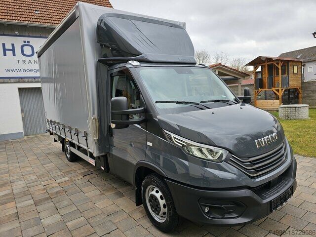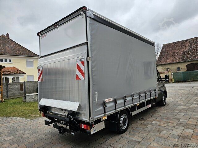 Iveco Daily 35S18 3.0 HPI 129KW/180HP Vehicle in stock - available immediately Color: Mineral Grey IC371 Wheelbase 4,100mm Platform body with sliding tarpaulin on both sides Roof and side spoilers 3D in vehicle color Cargo area length: 4,230mm, width: 2,210mm, height: 2,300mm 8 lashing points - toolbox on the right - underride guard Tail lift Bär 750 kg with roll-off protection 07820 Tow bar 3.5 tons (7-ton GVW) 06650 Automatic air conditioning with pollen filter and exterior temperature display 72625 Full-LED high-performance headlights 14522 Adaptive cruise control ACC 06555 Fog lights with static cornering light 75681 Connectivity Box telematics module 76747 Comfort dashboard 72801 HI-Connect Radio + Navigation DAB radio with 7'' color display, TomTom® car and truck navigation, driving style analysis, voice recognition, Apple CarPlay and Android Auto, the Daily Business UPTM app. 79300 Central storage compartment with USB charging port 02443 Leather steering wheel 00259 Comfort sprung driver's seat - suspension seat 79297 Comfort headrests 75082 Double passenger bench seat with multifunction storage and compartment 73024 Mirror brackets suitable for body width of 2.35 meters 08628 Overhead storage compartment 05925 Additional programmable speed limiter 06064 Dual-leaf spring at rear axle 02210 Spare wheel 00726 Spare wheel holder between the chassis rails 08640 90L fuel tank 72623 Instrument panel with color TFT display 79336 Radiator grille with chrome inserts. 72619 Steering column adjustable in 2 directions 07196 Air conditioning compressor 170 cm³ 02714 Electrically adjustable and heated exterior mirrors 00663 Front axle mud flaps 00219 Two wheel chocks 00256 Driver seat occupancy signal 04495 Driver airbag 08656 Body builder interface 06520 13-pin trailer socket 00747 ECO mode 00587 Rear panel insulation 2x USB, 1x AUX IN, 2x 12 V sockets Tires: 225/65R16C, ESP, ASR, ABS, central locking with remote control, electric windows, onboard computer, driver airbag. We would be happy to make you an of