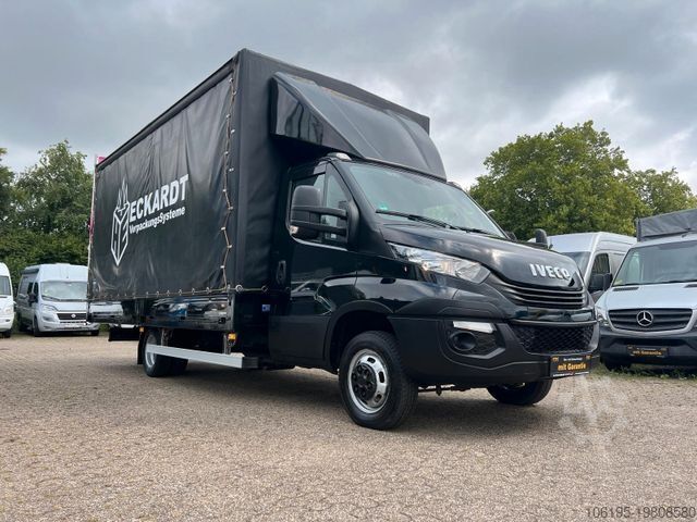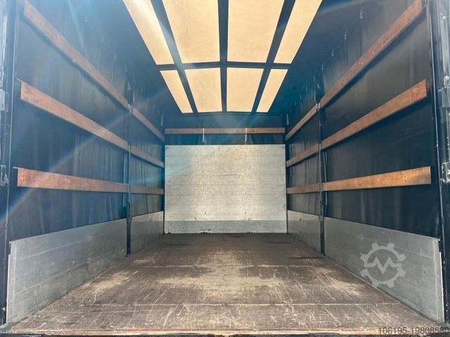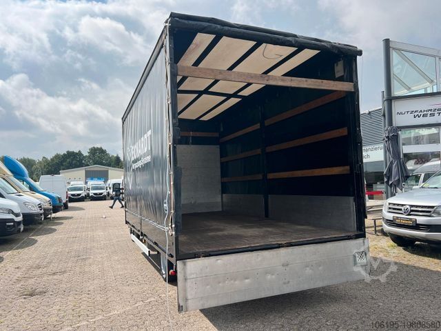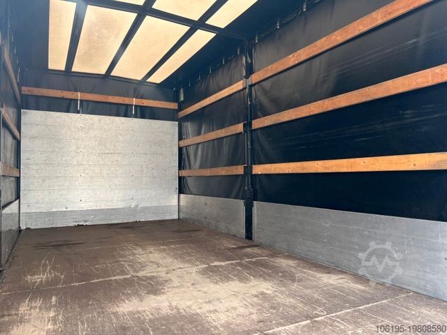 * Special equipment: Reverse camera, dashboard storage compartment with USB port, 13-pin trailer socket, audio system: radio with CD player (MP3-capable), USB and Bluetooth hands-free system, long external mirrors for vehicle width 2,350 mm, load area lighting switch, driver’s compartment seats: Comfort driver's seat (hydraulic adjustment). Other features: Driver airbag, traction control system (ASR), C-series version, electrically adjustable & heated external mirrors, brake assist, electronic brakeforce distribution, lane departure warning assist, digital tachograph, rear suspension: trapezoidal, tinted windscreen and side windows, 150 A alternator, body/type: standard flatbed, instrument cluster with pixel-matrix display, fuel tank: 70 litres, headlight range adjustment, engine: 3.0 litre – 110 kW diesel, radio pre-wiring with speakers, wheelbase: 4,350 mm, spare wheel like mounted tyres, spare wheel holder between longitudinal chassis rails, low-emission according to Euro 6, seats in driver’s cab: double passenger seat with headrests, service indicator, permissible gross weight: 5.20 t