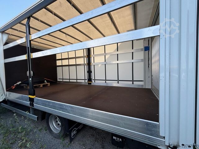 Tail lift BÄR up to 1,000 kg, tarpaulin, Hi-Matic automatic transmission (8-speed), automatic climate control, tow bar, digital tachograph, central locking with remote control, electrically adjustable and heated exterior mirrors, electric windows, hill start assist (AAS), lane departure warning system, emergency brake assist AEBS + City Brake, cruise control, speed limiter system 90 km/h, multifunction leather steering wheel, reversing camera, partition wall, full-size spare wheel, all-season tyres, light and rain sensor, daytime running lights, fog lights with static cornering light, digital audio system (DAB) HI-Connect with colour display and navigation, USB interface and Bluetooth hands-free system, storage compartment on dashboard with USB port, air suspension on rear axle, heat-insulating glazing, storage package, seat heating, rev counter, driver’s airbag, anti-lock braking system (ABS), electronic stability program (ESP), air-suspended seat, comfort seats, center armrest, driver comfort floating seat (hydraulic) with armrest and lumbar support, particulate filter, immobilizer, outside temperature display, power steering, flatbed body with sliding tarpaulin, removable and laterally adjustable center stanchions, right-hand side storage box, rear work light, trailer stability program (TSM), 13-pin trailer socket, tow jaw coupling on rear cross member, audio/telephone controls on the steering wheel, body manufacturer interface, equipment package: Daily Business Premium, comfort dashboard, 170 cc cold compressor, front double passenger seat with multifunction storage and stowage box, comfort headrests in passenger compartment, height and reach-adjustable steering column, Delivery Package, rear underrun protection omitted, rear cross member at end of frame, lighting switch for cargo area, A-pillar grab handle, vehicle key with remote control, model: C series, permissible gross weight 7.20 t, long mirrors – for vehicle width 2350 mm, service indicator, electronic brake force distribution, brake assist, front axle suspension: torsion bar suspension, spare wheel holder between longitudinal chassis rails, twin tires on 2nd axle / rear axle, traction control system (ASR), proactive lane monitoring assistant (LDWS), 210 A alternator, body: flatbed with sliding tarpaulin, wheelbase 4350 mm, drive type: rear-wheel drive. Over 150 transporters and buses in stock. Financing or leasing available through Santander Consumer Bank, Bank 11, or Auto Europa Bank – we will be happy to advise you. This offer is non-binding, no guarantee on equipment details. Listed features may require separate verification. Subject to changes, errors, and prior sale. Delivery available for an additional charge. Export license plates available on site. Trade-in of your old vehicle possible. Retrofitting of: - tow bars up to 3500 kg possible - auxiliary heaters - monitor for reversing camera and/or navigation via smartphone (Android Auto) - reversing system with rear camera - workshop equipment - cruise control - retrofitting of a tail lift and other individual solutions for your business needs available for an additional charge.