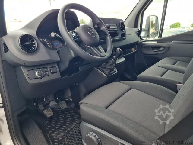 Wind deflector, regulated air conditioning (Tempmatik), keyless start, electrically adjustable and heated exterior mirrors (both sides), electric windows (2-way), driver assistance system: active lane keeping assist, cruise control, multifunction steering wheel, full-size spare wheel, daytime running lights, radio, Bluetooth, hands-free system, USB port centrally located under dashboard (charging only), Mercedes-Benz emergency call system, heat-insulating glazing (windscreen with top band filter), tachometer, driver's airbag, anti-lock braking system (ABS), electronic stability program (ESP), particulate filter, immobiliser, steel rims 6.5x16, headlamp range adjustment, sleeping facility, outside temperature display, power steering, paintwork: ARCTIC WHITE, fuel sender for auxiliary heater, fuel filter with water separator, lockable storage compartment above windscreen, fleece battery 70 Ah, cab seats: low driver’s seat box, terminal strip for electrical connections (driver’s seat box), cab seats: front double passenger seat, driver assistance system: active brake assist, chassis: stabilisation level II, armrest - driver and passenger door, folding lid for storage compartment, fuel tank: main tank 93 litres, socket (12V connection) in cab, jack, cab seats: comfort suspension seat - driver’s side, spare wheel holder under rear frame incl. jack, single-pole battery master switch, seat belt system with warning indicator (passenger side), truck registration, permissible total weight 3.5 t, external noise measures, rear towing eye, automatic driving lights activation, adaptive brake light, side marker lights, DAB radio preparation, radio preparation, two-way speakers front, communication module (LTE) for digital services, service interval indicator Assyst, washer fluid level indicator, storage compartment below dash on passenger side, cab roof lining, cab seats: driver’s seat with armrest, seat belt system with warning indicator (driver’s side), electronic brake force distribution (EBV), steering wheel (mechanically adjustable column), traction control system (ASR), driver assistance system: crosswind assist, 200 A alternator, body/chassis: flatbed, wheelbase 4325 mm, drive type: rear-wheel drive, 6-speed gearbox - TSG (Eco Gear), over 150 transporters and buses in stock. Financing or leasing available via Santander Consumer Bank, Bank 11, or Auto Europa Bank – we are happy to advise you. This offer is non-binding; no guarantee is given for equipment details. Listed equipment may need separate verification. Subject to change, mistakes, and prior sale. Delivery available at an additional cost. Export registration here on site. Trade-in of your old vehicle possible. Retrofitting options: - Tow bars up to 3,500 kg possible - Auxiliary heaters - Display for reversing camera and/or navigation via smartphone (Android Auto) - Rearview system with reversing camera - Workshop equipment - Cruise control - Retrofitting a tail lift (LBW) and further individual solutions for your business needs available at extra cost.