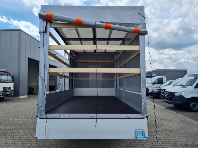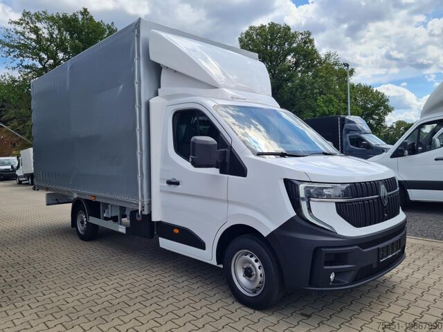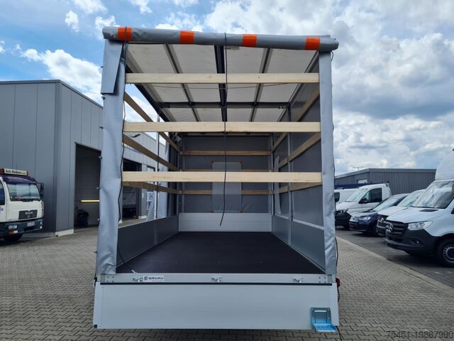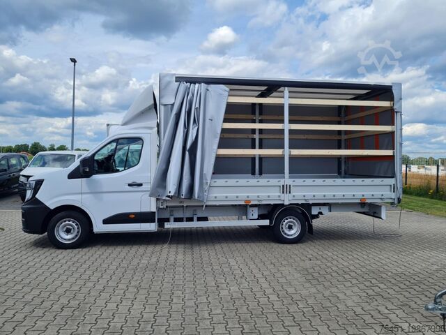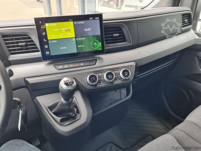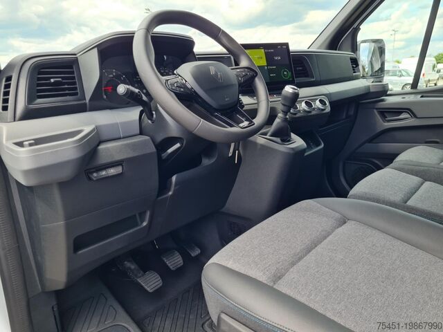 Wind deflector, air conditioning, central locking with remote control, electrically adjustable and heated exterior mirrors, electric front windows, on-board computer, cruise control, multifunction steering wheel, light and rain sensor, LED daytime running lights, radio, touchscreen, Bluetooth, hands-free system, Apple CarPlay, Android Auto, rear air suspension, heat-insulating glazing, tachometer, driver's airbag, anti-lock braking system (ABS), traction control system (ASR), cab seats: driver's seat with lumbar support, start/stop automatic, diesel particulate filter, immobilizer, side marker lights, outside temperature display, power steering, flatbed with sliding tarpaulin, model update, permissible gross weight 3.50 t, underbody storage box, front mud flaps, gear shift indicator, interior filter: pollen filter, cab seats: mechanically suspended driver's seat, cab seats: driver's seat with armrest, cab seats: multifunctional dual passenger seat, cab seats: height-adjustable driver's seat, overhead storage shelf, electronic brake force distribution, brake assist, height-adjustable steering column (steering wheel), electronic stability program (ESP), 185 A alternator, body/type: flatbed, wheelbase 4,332 mm, drive type: front-wheel drive, 6-speed gearbox