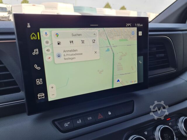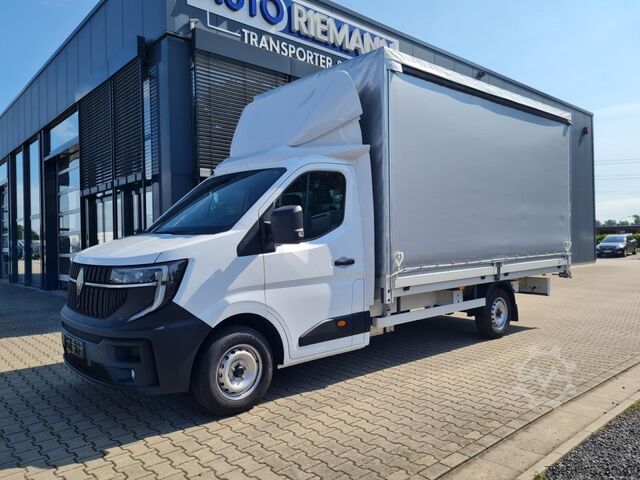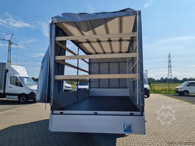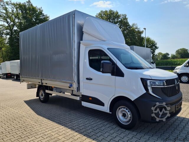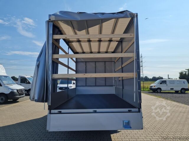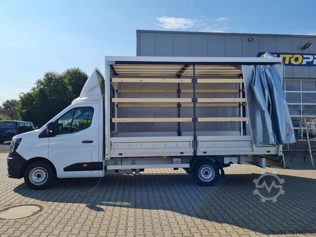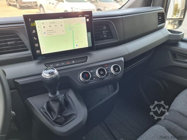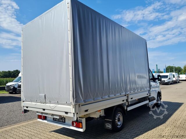 Tarpaulin, wind deflector, air conditioning, central locking with remote control, electrically adjustable and heated exterior mirrors, electric front windows, onboard computer, cruise control, multifunction steering wheel, rear parking sensors, partition wall, spare wheel with standard tires, summer tires, light and rain sensor, LED daytime running lights, fog lights, radio/navigation with Bluetooth hands-free system, touchscreen, USB port, Apple CarPlay, Android Auto, long wheelbase, heat-insulating glazing, storage package, tachometer, driver's airbag, anti-lock braking system (ABS), traction control (ASR), comfort seats, center armrest, driver comfort seat – height-adjustable with armrest and lumbar support, start/stop automatic, particulate filter, full service history, flatbed with sliding tarpaulin and high-luminosity roof, immobilizer, side marker lights, outside temperature display, power steering, model update, permissible gross weight 3.50 t, front mud flaps, gearshift indicator, interior filter: pollen filter, multifunctional passenger double seat, overhead storage shelf, electronic brake-force distribution, brake assist, height-adjustable steering column (steering wheel), electronic stability program (ESP), 185 A alternator, bodywork/construction: flatbed/tarpaulin, wheelbase 4215 mm, drive type: front-wheel drive, 6-speed manual transmission
