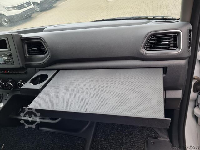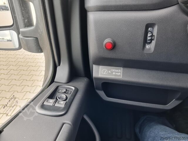 High tarpaulin, wind deflectors, air conditioning, central locking with remote control, electrically adjustable and heated exterior mirrors, electric front windows, on-board computer with trip computer, cruise control. Speed limiter, outside storage compartment, spare wheel with driving tires, summer tires, light and rain sensor, LED daytime running lights, fog lights, DAB radio with Bluetooth hands-free system, AUX and USB interface, long wheelbase, heat-insulating glass, storage package, tachometer, driver's side airbag, anti-lock braking system (ABS), traction control (ASR), air seat, comfort seats, center armrest, driver comfort floating seat - height adjustable with armrest and lumbar support, shift paddles on the steering wheel, start/stop system, soot particle filter, service history, high roof, immobilizer, side marker lights, outside temperature display, power steering, flatbed with sliding tarpaulin on the left, rear step, side underrun protection made of aluminum, LED side marker lights, lashing eyes (8), storage box on the right, multifunctional double passenger seat, front mud flaps, gearshift point indicator, interior filter: pollen filter, storage gallery, permissible. Gross vehicle weight 3.50 t, electronic brake force distribution, brake assist, height-adjustable steering column (steering wheel), Electronic Stability Program (ESP), 185 A generator, drive type: front-wheel drive, body/structure: flatbed, wheelbase 4332 mm, 6-speed transmission.