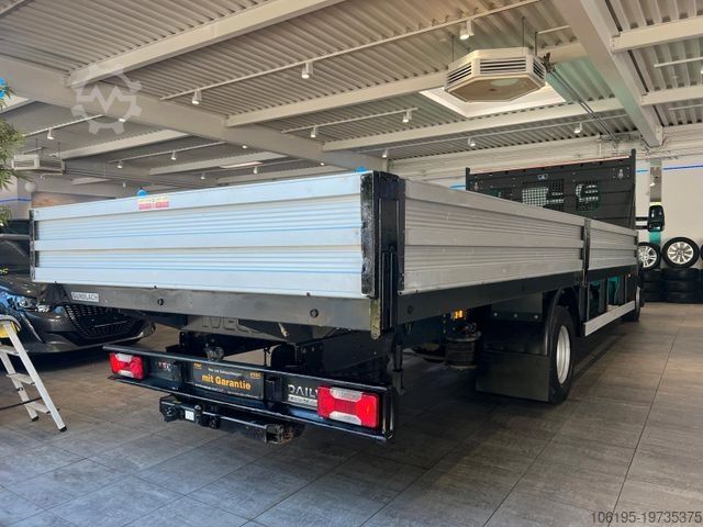 Further features: Driver’s airbag, traction control (ASR), configuration: C-series, electrically adjustable & heated exterior mirrors, long mirrors for vehicle width 2,350 mm, brake assist, electronic brake-force distribution, lane departure warning system, digital tachograph, tinted windscreen and side windows, 150A alternator, Hi-Matic automatic gearbox (8-speed), A-pillar grab handle, body/chassis: standard flatbed, instrument cluster with pixel matrix display, fuel tank: 90 liters, headlight range adjustment, 3.0 l – 132 kW diesel engine, radio pre-installation with speakers, wheelbase 4,750 mm, spare wheel with standard tire, spare wheel holder between longitudinal frame members, Euro 6 low-emission standard, seats in cab: front passenger double seat with headrests, maintenance indicator, permissible gross vehicle weight 7.00 t