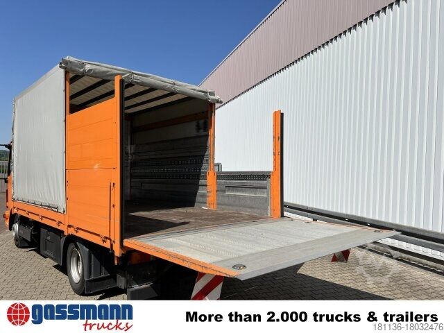 Vehicle location: Bovenden, registration number house, 1x comfort seat, seat heating, electric mirror, heated mirror, electric window left, electric window right, air conditioning, cruise control, ABS (anti-lock braking system), traction control (ASR), AS-Tronic automatic, rotating beacon, storage box, leaf-air suspension, tarpaulin and bows, lashing eyes, U-protection, aluminum side bumper, pendulum flaps, roof hatch, aluminum tail lift, upright, environmental badge green