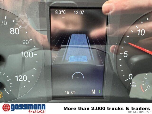 Wheelbase: 3900 mm Structure: Flatbed construction ABS, EBS, full brake assist, emergency brake signal, flame start system, ESP, stabilizer front and rear axle, lane departure warning LDW, ASR, LED daytime running lights, CC driver's cab.