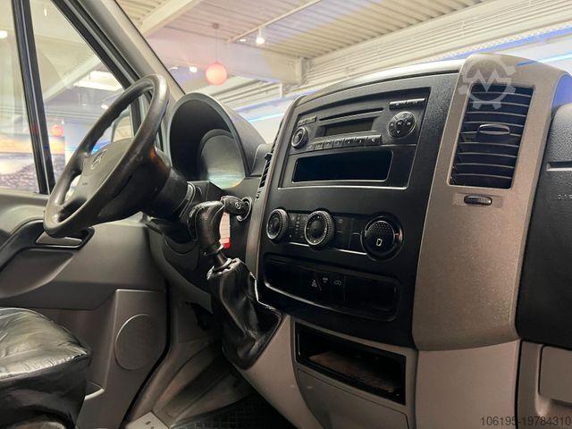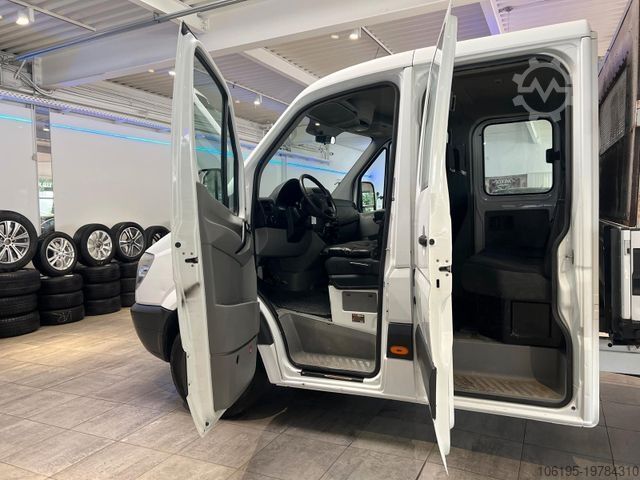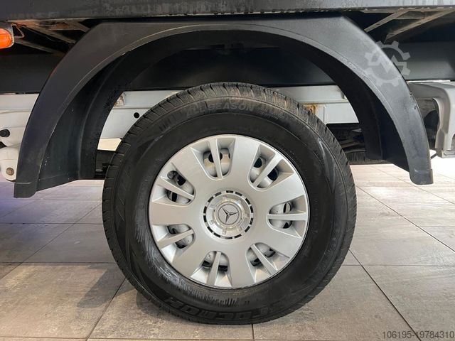 * Special features: Passenger airbag, hill-start assist, towbar with ball head for increased towing capacity up to 3.5 t, 13-pin trailer socket, outside temperature display, 100 Ah battery, 180 A alternator, full-size spare wheel, spare wheel holder under rear frame incl. jack, internal rear-view mirror, partition with window, front passenger double seat in cab, reinforced rear stabilizer, reinforced front stabilizer, heavy-duty shock absorbers, fuel sender for auxiliary heater, rear panel trim, reinforced front axle, auxiliary hot-water heater. Additional features: Adaptive brake light, driver airbag, washer fluid level indicator, both exterior mirrors electrically adjustable & heated, mirrors with integrated indicators, brake assist, ABS+ASR braking system, cab roof lining, lockable glove compartment, body type: double cab dropside (standard), main fuel tank: 75 liters, headlight range adjustment, engine 2.1 liter – 95 kW CDI KAT (2143 cc), wheelbase 3,665 mm, smoker’s package, low emissions per Euro 5, driver’s seatbelt warning, seat/upholstery: Lima fabric, 6.5x16 steel wheels, Assyst maintenance interval display, heat-insulated glazing, permitted gross weight 3.50 t