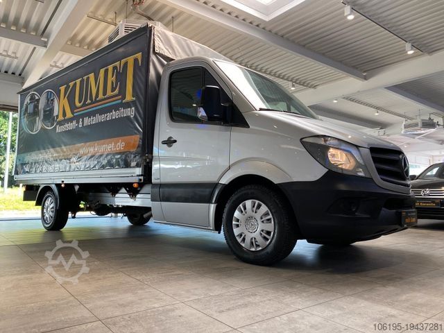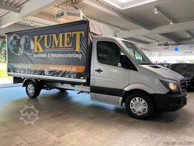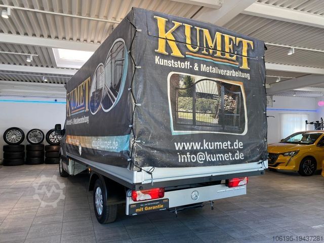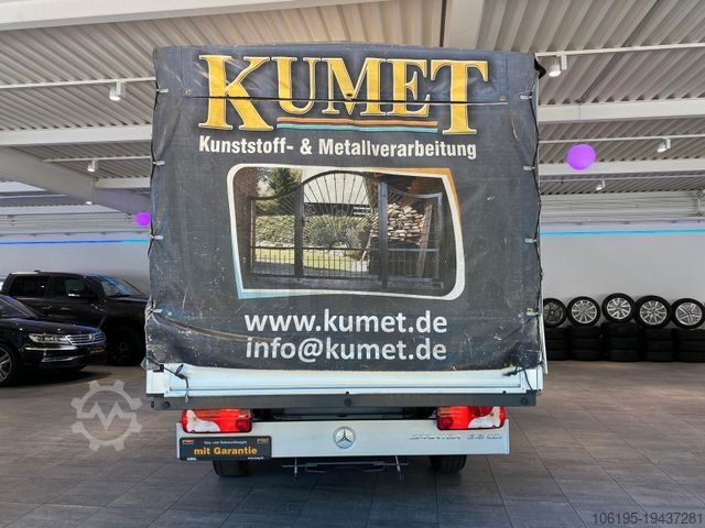 Further equipment: Adaptive brake light, driver's airbag, washer fluid level indicator, electrically adjustable and heated exterior mirrors, both sides, exterior mirrors with integrated indicator, 74 Ah battery, brake assist, braking system with ABS+ASR, cab roof lining, lockable glove compartment, body/structure: flatbed, fuel tank: main tank 75 liters, headlight range adjustment, truck registration, model update, engine 2.1 L – 120 kW CDI CAT, wheelbase 4325 mm, low emissions according to Euro 6, seat belt warning system (driver's side), seat covering/upholstery: Lima fabric, cabin seats: adjustable passenger seat, steel rims 6.5x16, service interval indicator Assyst, heat-insulating glazing, permissible total weight 3.50 t
